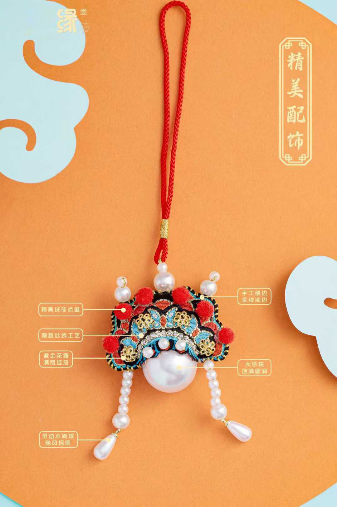 以京劇旦角鳳冠為原型,提取其標誌性元素進行意象化轉譯 ——將鳳冠紋樣的簡化為刺繡的蝴蝶紋理,羽翼舒展如花瓣;冠上的珍珠絨球化作香薰頂部的紅色絨球點綴,立體感十足;鳳冠的鎏金飾片抽象為香薰表面的鍍金花鱗,精緻且好看。整體造型摒棄鳳冠的繁複層疊,以半月形輪廓呼應冠飾的弧線美感,開合處綴以大珍珠,既保留戲曲服飾的華貴基因,又適配日常佩戴的便攜性。