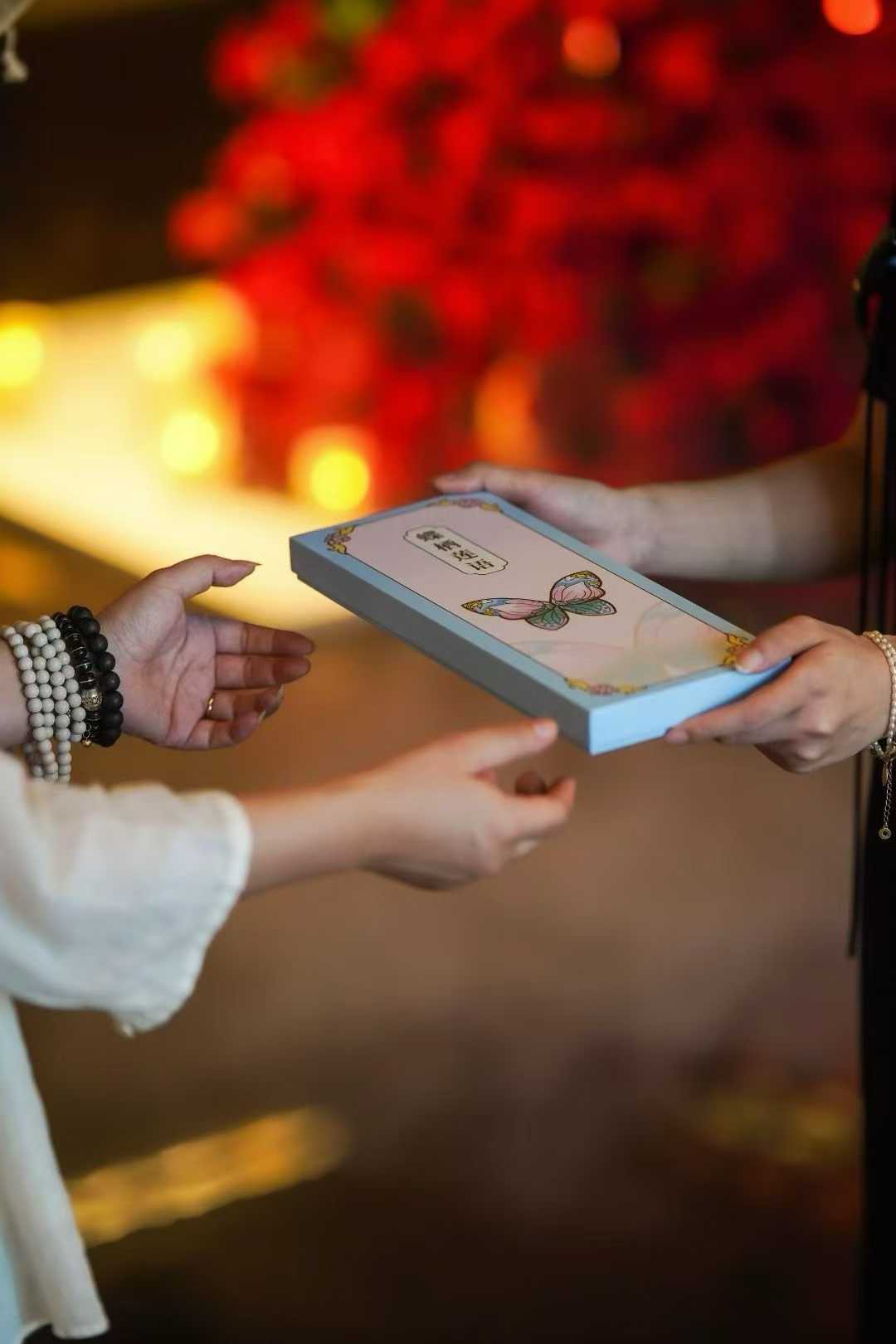 吉祥意涵說明:「蝶棲蓮語」以蝴蝶棲於蓮花之上為設計意象,蓮花象徵純潔高雅,蝴蝶寓意吉祥美滿,整體蘊含平安順遂、幸福纏身的美好祝福。此款香囊推出3款經典款式,以精緻絲繡工藝還原蝶蓮之美,內含清雅荷花香調,兼具香氛體驗、裝飾屬性與文化價值,是伴手禮、日常掛件及服裝搭配的優質選擇。