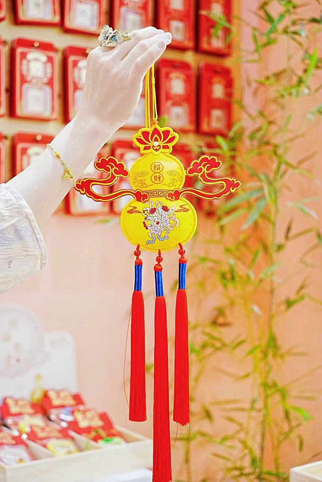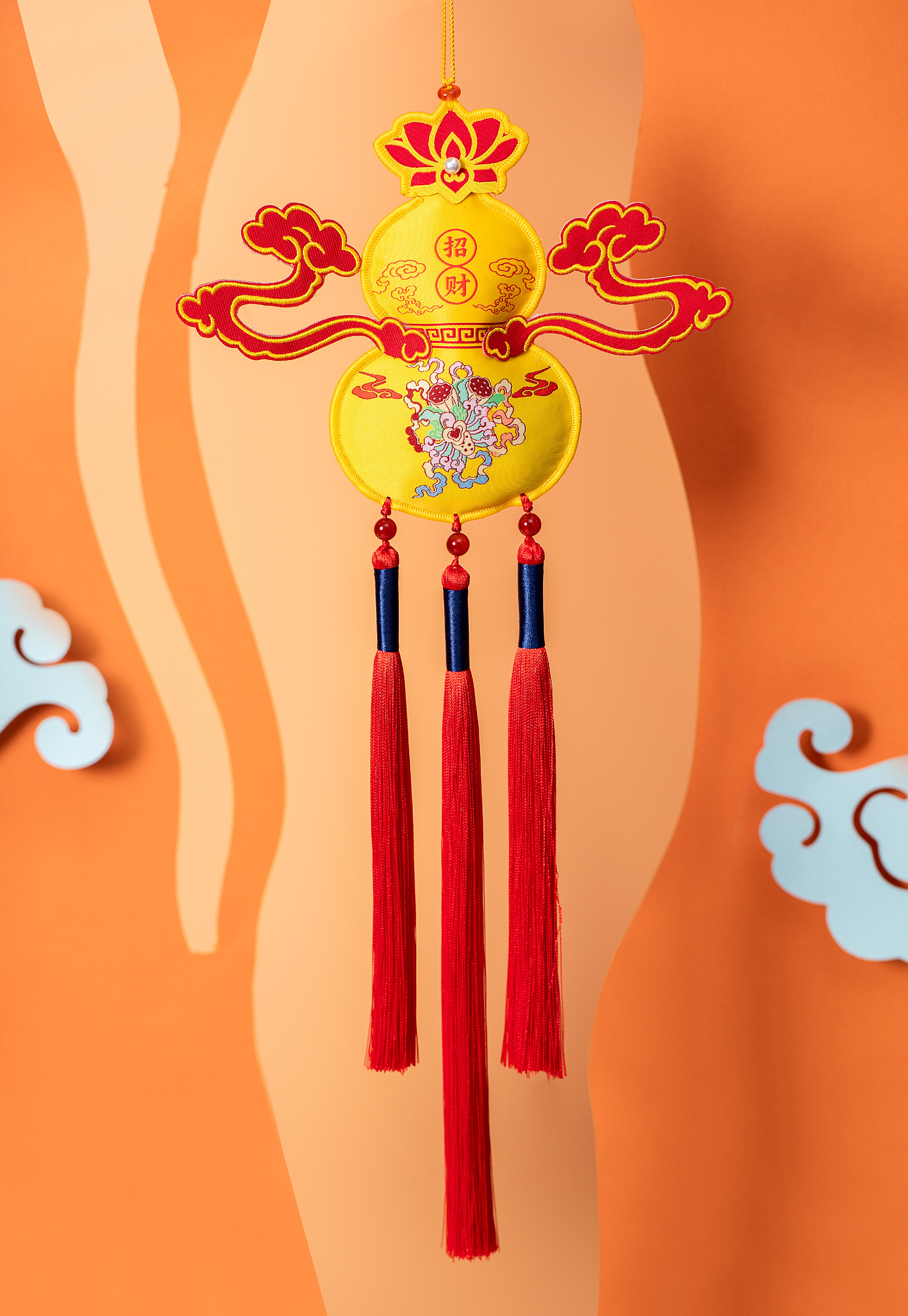 吉祥意涵說明:故宮聯名款平安葫,以「葫蘆」諧音「福祿」的中式吉祥寓意為核心,推出「平安喜樂」「招財進寶」兩款經典款式,分別承載平安順遂、財運亨通的美好祝福。產品融合故宮經典文化元素與精緻絲繡工藝,內含檀香帶來清雅香氣,兼具文化珍藏價值、裝飾屬性與實用性,是服飾搭配、空間裝點及饋贈親友的優質伴手禮。