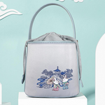 Palace Barrel Bag 2 Styles | Polyester + Eco-Friendly Microfiber Leather, Exquisite Silk Embroidery | Storage, Matching, Guest Gift, B2B Bulk Wholesale Cultural Gifts.