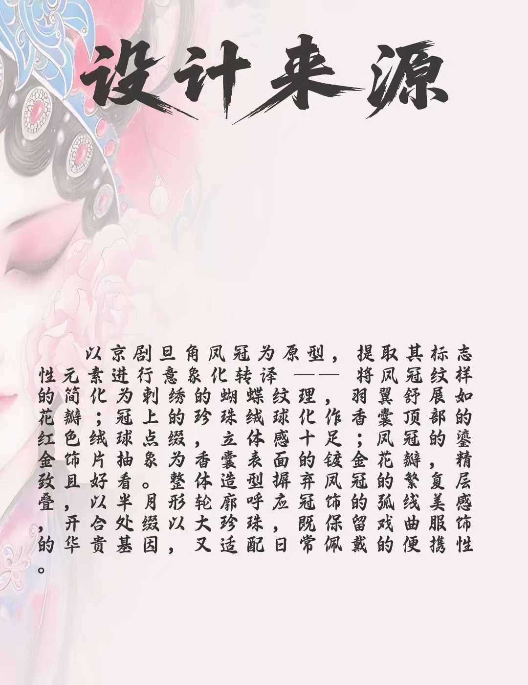 Design InspirationBased on the phoenix crown of Peking Opera female roles, we extract its iconic elements for artistic reinterpretation:Simplify the phoenix crown patterns into embroidered butterfly textures, with wings spreading like flower petals;Transform the pearl pom-poms on the crown into red pom-pom embellishments on the top of the sachet, creating a strong 3D effect;Abstract the gilded decorative pieces of the crown into gold-plated flower scales on the sachet surface, which are delicate and aesthetically pleasing.The overall shape abandons the complex layers of the traditional phoenix crown, using a half-moon outline to echo the curved beauty of the crown ornament; a large pearl is attached at the opening and closing part.It retains the luxurious essence of opera costumes while being portable for daily wear.